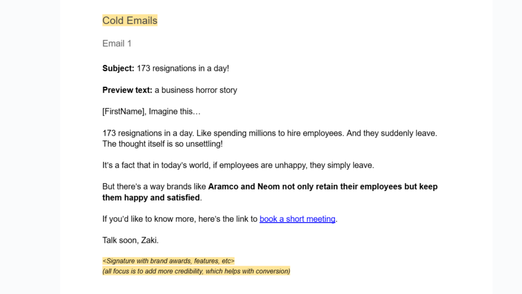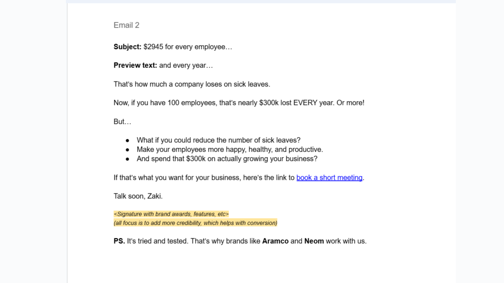 Developed a targeted cold email series designed to engage CEOs and COOs of mid-to-large enterprises (200+ employees). Personalized messaging focused on senior decision-makers, driving meaningful conversations and consultation bookings.